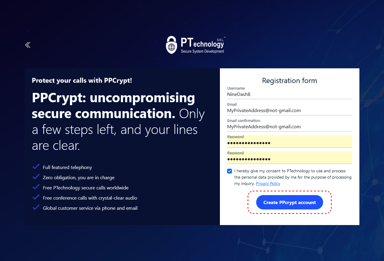 By clicking the "Create PPcrypt account", you are only one step far from your prepared account.
